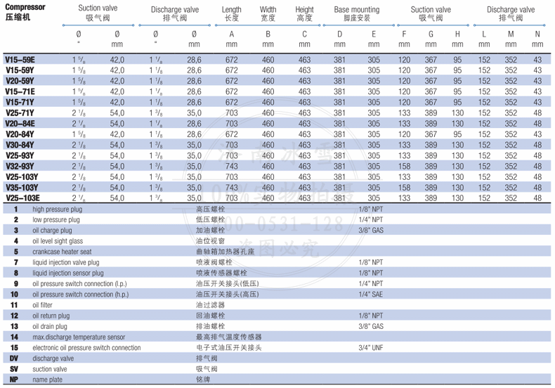 (7)包含截止閥、冷凍油和橡膠減震墊的凈重